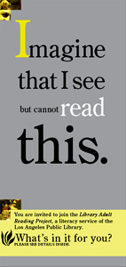 Promotional Flyer for the Library Adult Reading Project, a a literacy service of the Los Angeles Public Library. see thumbnails