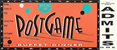 Super Bowl Postgame media dinner invitation also serves as ticket, with tear-off stub. BRAND:NFL | CLIENT:NFL Special Events | AD:Sharon Peters © Sharon Peters 2009. Images and logos are copyright of respective owners.